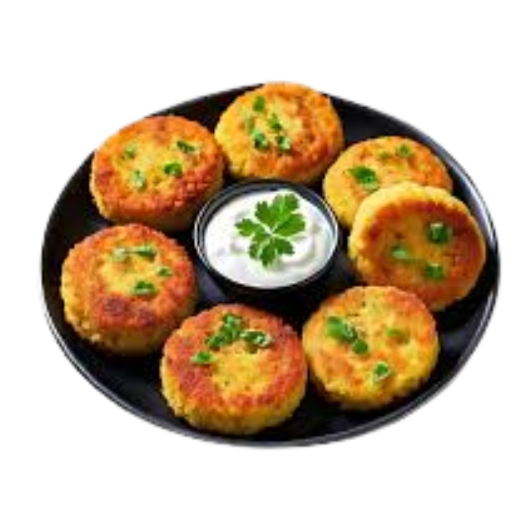 Mixed vegetable patties tempered with cumin seeds & Indian spices.