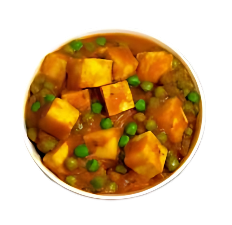 A classic North Indian curry made with paneer and green peas in a mildly spiced tomato gravy.