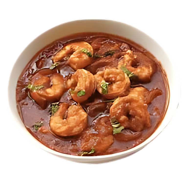 Juicy prawns simmered in a spicy coconut gravy.