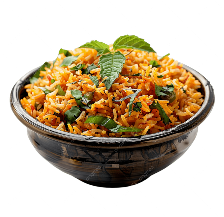 Aromatic basmati rice cooked with fresh seasonal vegetables and exotic Indian spices, creating a wholesome and flavorful vegetarian delicacy.
